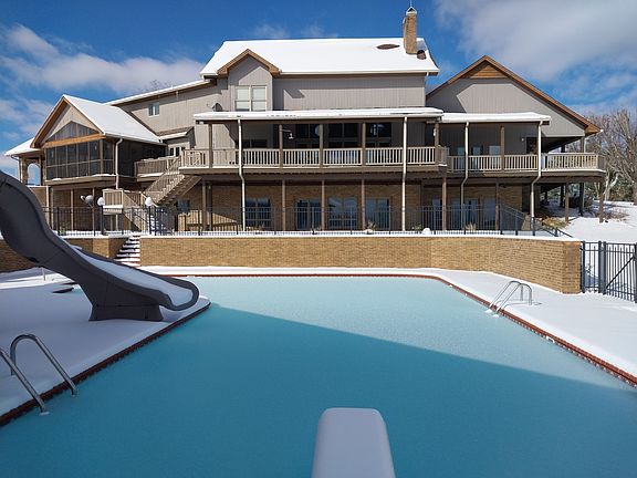 WOW!! This home has it all!!! Watch the youtube video!!! It is located at the bottom of the page or go to youtube and type in the address. You can't see it from the road, it has plenty of land to farm or have animals, it has ample room for a big family, a giant swimming pool, and views that are beautiful!!!! The back deck will leave you amazed!! The pool is a 48,000-gallon pool. The pool house has a full bathroom in it. You could turn this place into a getaway resort, or a bed & breakfast, or an airb&b!!!  WOW!! 783 ft of road frontage!!! Developers dream!!! Buy this property and survey the house off and develop the rest and build nice homes with land!!!There is about 13 acres of woods and the rest is open!!! It has a 26x32 Shop on it. Within the last 5 years the following have been updated:3 HVACs, floors, granite, appliances, bathrooms. the heating and cooling system is Geothermal.