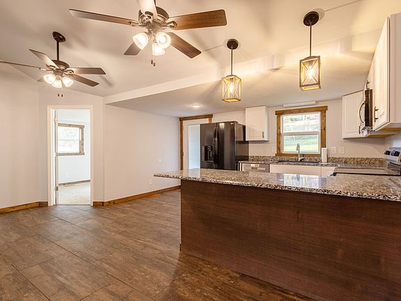 Price just reduced! Nestled on 5.78 tranquil acres this charming, renovated mini-farm offers plenty of space and modern amenities. This beautifully renovated home features a chefs kitchen with elegant granite countertops and stylish cabinets. The main floor boasts three bedrooms and two bathrooms. Beautiful hardwood floors flow through the living room and dining room creating a warm & inviting atmosphere. The main floor also includes a recreational room providing ample space for both entertainment and relaxation. Upstairs you will find a versatile flex area and office space. The home has both city water plus a well for backup. Outside the property enjoy the lush green acres providing ample space for outdoor activities and hobbies. Relax or entertain on the large patio surrounded by the beauty of nature. This picturesque mini farm is the perfect blend of modern comfort and rustic charm.