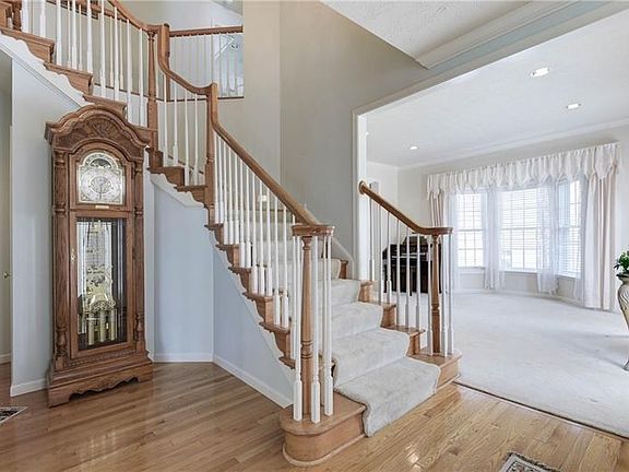 This spacious brick home overlooking Lindenview Golf Club is the home for you! Guests enter into a bright foyer with winding staircase, glossy hardwood floors, and crown molding. The spacious living room opens through pillars to a formal dining room with tray ceiling, bay windows, and tasteful wallpaper. The huge eat-in kitchen is an entertainer's delight with ample counter space, white appliances, and seating for the whole family in the morning room! The bright two-story family room features a gas fireplace and tons of windows. Upstairs, the owner's bedroom has a tray ceiling, his/hers closets, and a bonus sitting room with a built-in desk. The en-suite bathroom is an oasis with dual vanities and jacuzzi tub. Bedroom 2 has a private bath while bedrooms 3 & 4 share a jack-n-jill bathroom! Downstairs, the massive, walkout basement goes on forever with finished space and storage! Outside, a covered back deck has space for the whole family, and a patio below spills into the back yard.