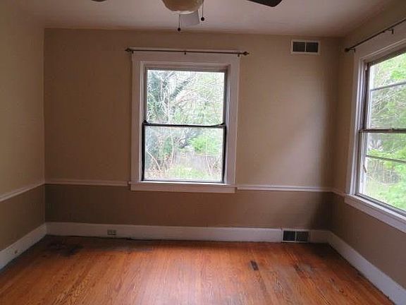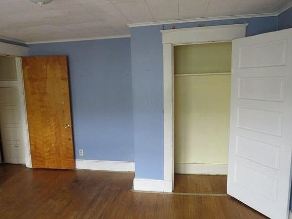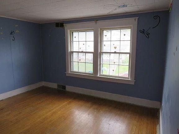 Two story home with a front covered porch. Decorative fireplace in the living room. Full, unfinished basement.