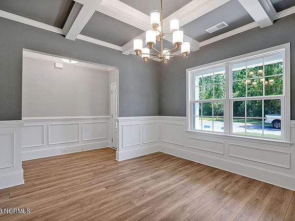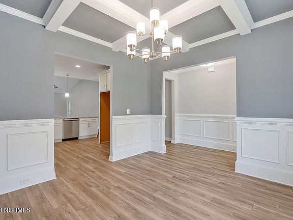 Brand NEW, low maintenance, brick home under construction in the gated community of Palmetto Creek. This Southport from Caviness and Cates offers nearly 2200 sq ft of living space all on one level, plus a spacious screened in outdoor living area. Walk inside to be wowed by the dining area/flex room with beautiful coffered ceilings and wainscoting, flowing seamlessly to the kitchen and living areas. The gourmet kitchen includes a double oven and smooth top cooktop with timeless white cabinets, 'Santa Cecila light'' granite countertops and white subway tile backsplash. The spacious great room has cathedral ceilings with wood beam detail and a cozy gas fireplace; opening to the spacious Carolina Room, the perfect spot for a home office or laidback sitting room. The primary bedroom suite is located on the back of the home and includes a tray ceiling with crown molding details and 2 walk-in closets with custom wood shelving. Step inside the spa-like bathroom with tile flooring, 2 separate vanities with quartz countertops, a corner zero-entry fully tiled shower, private water closet and a linen closet. Two additional bedrooms share a hall access to a full bathroom with tile flooring, white vanity cabinets and quartz countertops, and bathtub/shower combination. Just off the two-car garage, is the laundry room with washer/dryer connections and linen closet. Additional features in this home include LVP flooring in the foyer, great room, kitchen, dining area and carolina room, wainscoting in the foyer and dining room, full house gutters, sodded yard with whole yard irrigation system, and in-house builder warranty for added peace of mind. Enjoy nearby Oak Island and all the amenities at Palmetto Creek - clubhouse with resort-style pool, fitness center, trails, tennis courts, putting green, along with a kayak/canoe launch to peruse the ponds and lakes. Don't miss out on this opportunity to own a new home in Palmetto Creek!