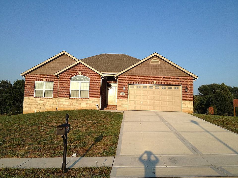 Beautiful 3 bedroom 2.5 bath walk-out ranch. This home boasts 11' ceilings in the foyer and family room and 9' ceilings in the rest of the home. The family room is bright, sports a gas fireplace with granite surround, and wiring for a wall mount TV. The dreamy kitchen has many upgrades with attractive 36" maple cabinetry with crown molding, center island, large walk-in pantry, built-in desk, recessed lighting, and quartz counter tops. Extra room is provided by the bay in the dining room, and gliders take you to the 12x24 plastic wood deck, which has stairs leading to the patio. Retreat to the master bedroom with walk-in closet and master bath with dual vanities, separate shower, and large garden tub. Bedroom 2 features its own walk-in closet and sun burst window. Conveniently located near walking trail and easy highway access. (Youtube Video Listing for House: https://www.youtube.com/watch?v=d-S31SPIc0M)