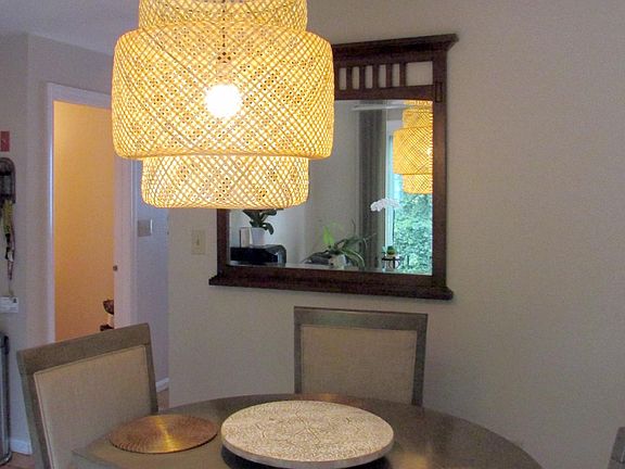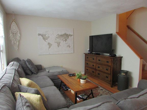 Townhouse =Three levels...separate heating zones. 1.5 baths.LR, DR small kitchen on first floor, 1/2 bath... Glass slider to deck and back yard. Second floor Two equal sized bedrooms with two double closets. Full bath on this floor. Garden level has one room good for home office, gym...not a bedroom. W/D hookup on this level and storage .Parking for 2 cars. Available 9/1. Call Paula, Broker, 1/2 Fee