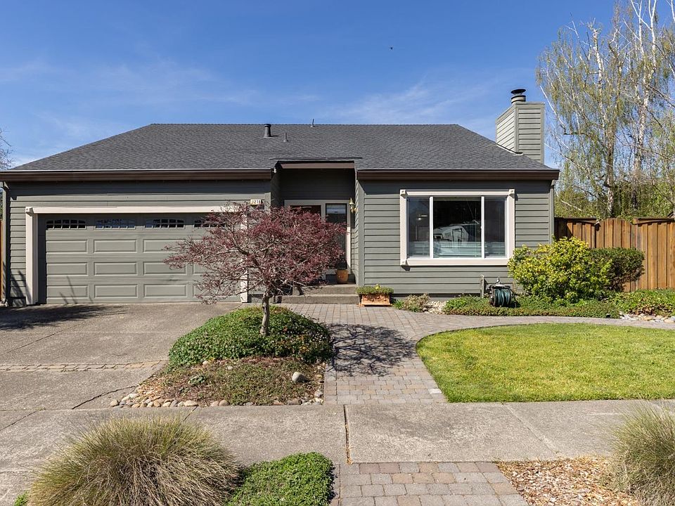 Once upon a sun-dappled corner, a charming abode perches midway on a gentle bend, cradling an oversized 10,000 +/- sqft parcel. Here, drought-tolerant flora dances across exceptional landscaping, where a cobbled paver patio unfurls, inviting dining under starlight with grand entertainment, as raised planter beds and a climbing trellis beckon farm-to-table feasts. The hammock sways lazily, promising summer siestas, near additional usable yard spaces including the side areas, which provide ample storage opportunities within the shed and nook areas of the lot. This two-story, 4 bedroom/ 2 bath, 1900 + /- sqft home rises like a peaceful retreat in wine country. Inside, artist-designed hues grace the cabinets, bonus space ie. a painter's hideaway, workout den, kids' playroom or additional bedrooms. The kitchen, a culinary hearth, boasts a breakfast counter and a niche coffee bar, flowing into an open floor plan of a central brick fronted fireplace living room. Situated in NWSR, near a park, shopping/local amenities, and Santa Rosa Creek, it is located mere minutes to the Golden Gate Bay Area and the Pacific Coast. RV parking possibilities.