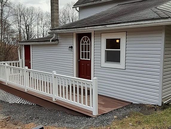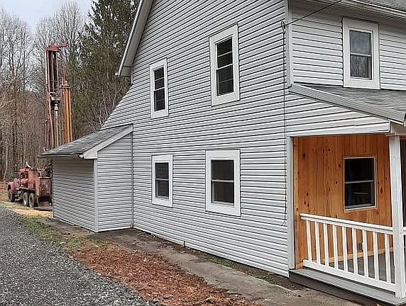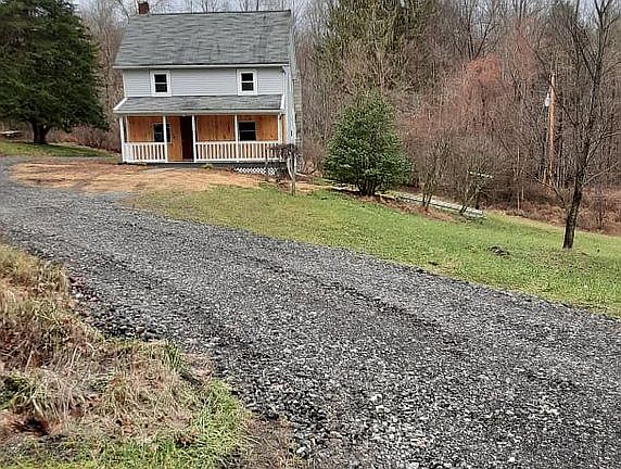 10.62 mostly wooded acres with seasonal stream and farm house. Newly remodeled house, 2-1/2 story 4 bedroom 2 bath farm house. ". Life Stock Allowed, New Well, Appliances included, Shared Driveway right of way, DO NOT drive back or block lane, no place to turn around.