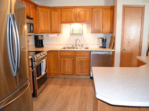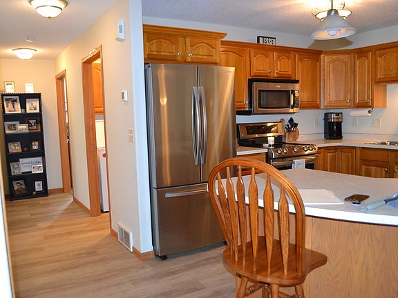 Here's an opportunity to own a rare ground floor condo in the heart of Bismarck! The home features two large bedrooms, two bathrooms and a large open floor plan for living and entertaining. You'll love the kitchen area with stainless appliances and the island with plenty of seating. The floor plan is all on one level with no steps! The concrete patio has plenty of room for grilling and relaxing in an outdoor space. The garage is huge with two overhead doors and room for parking, storage and tinkering with projects. Contact Bret Ruff with UCRE Home Land Brokers to schedule your private showing. Home Land Brokers specializes in providing outstanding real estate services to both buyer and seller.