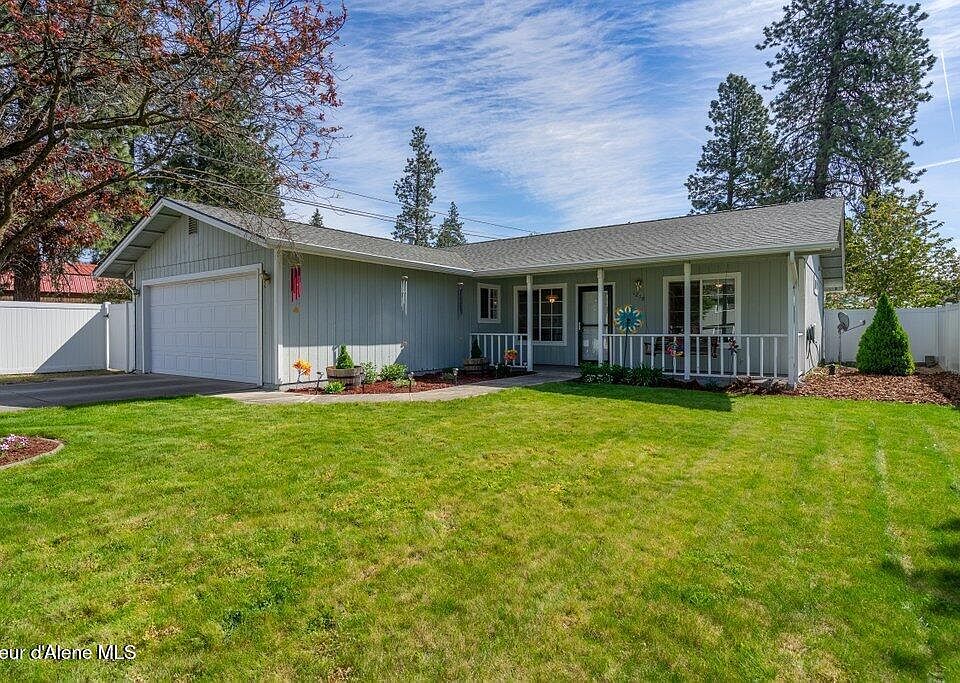 Welcome to this charming single-level rancher nestled on a quiet corner lot in the heart of Post Falls! This 3-bedroom, 2-bathroom home features a desirable split floor plan for added privacy, and a welcoming covered front porch perfect for morning coffee. Step into the spacious 10' x 19' enclosed backyard sunroom—ideal for year-round enjoyment. The beautifully landscaped yard boasts raised garden beds and mature fruit trees, offering both beauty and bounty. Located on a tranquil block with only two homes facing Catherine Street, this property offers rare peace and privacy. Updates include a newer roof (2020), furnace, and appliances. No CCRs and no HOA, you'll enjoy both freedom and flexibility. Don't miss this well-maintained gem!