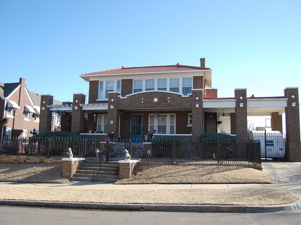 Extra Large home with countless amenities near entertainment districts, the streetcar and easy access to downtown OKC. Kitchen has Corian Countertops, white tile backsplash, dishwasher, disposal, gas Bosch range and a French door Refrigerator. Formal Dining has a massive chandelier and an antique tin ceiling. Upstairs is a large ensuite with oversized bedroom, walk-in closet, and bathroom. There is also a rooftop deck, off the primary bedroom, overlooking the downtown skyline. The basement has a workshop or artist's studio, living area, full bath with steam shower, closet space and a large bedroom. There are two large bedrooms on the main floor. The floors are quarter sawed original oak, restored and beautiful. The woodwork is marvelous. This is a, "one of a kind," treasure of a home. The house is 4 beds (could be more, depending on how you use the basement space), 3 full baths, office space, laundry room, 2 dining, 2 living, rooftop deck and absolutely enormous tiled front porch. The front of the home is fenced with custom wrought iron fencing. There is also a $325 monthly utility fee that covers, Natural Gas, Water & Garbage and all the exterior yard work. Tenant pays ONLY Electric. Applications are submitted via Zillow for all occupants over 18 years of age. Some pets accepted with monthly pet rent. No smoking permitted inside the house.