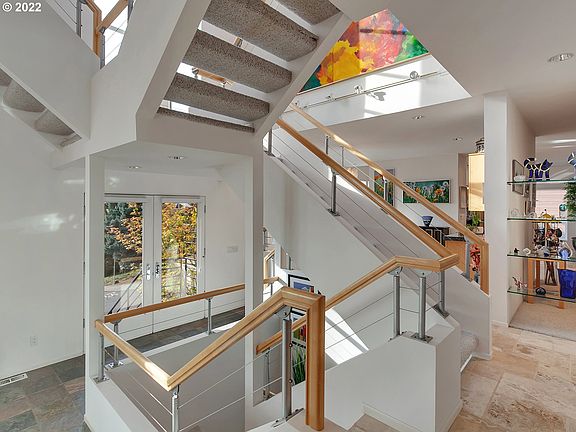 Stunning Architectural Home. Vaulted ceilings, massive open space with soaring windows. Maximum natural light & stunning views from any room. Travertine floors, granite Wolf Range & custom glass bar in kitchen. Flexible floor plan with Family Room & Den/Office. Quarter Acre+ lot-tons of possibilities. 2x balconies for show stopping sunsets & 2x patios in private wooded back yard. Giant 3 car garage with tons of storage. Fabulous close-in Forest Heights location. Minutes to downtown & Tech parks. [Home Energy Score = 1. HES Report at https://rpt.greenbuildingregistry.com/hes/OR10206287]
