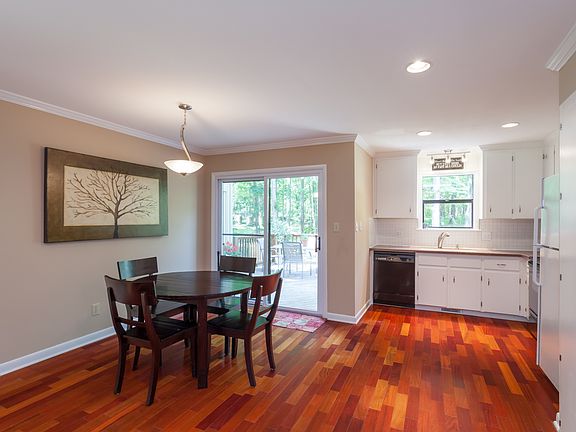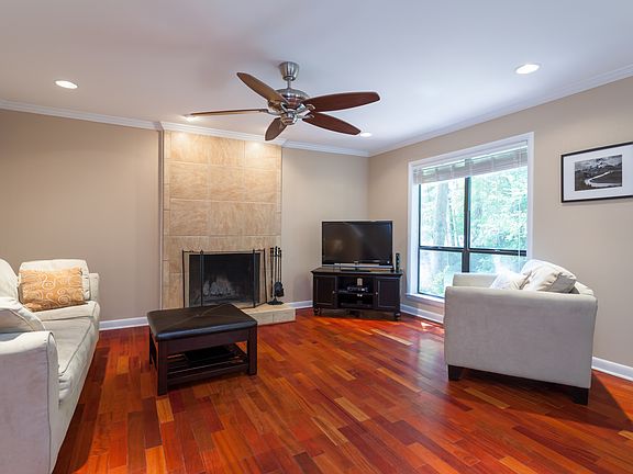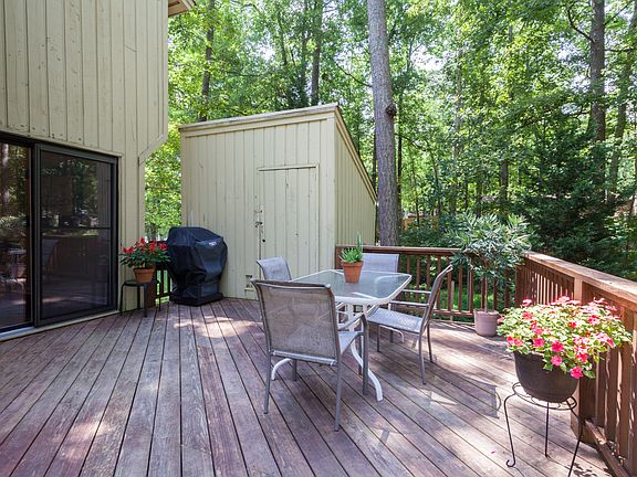 Rare opportunity to grab a contemporary home with open floor plan in the desirable Woodwinds neighborhood. Move-in ready with hardwoods and tiled wood-burning fireplace on main level. New heat pump installed in 2019. Huge .6 acre lot with massive appeal for playful pets and people. One two-level storage room attached to back deck and larger 12x10 barnlike outbuilding with side addition located at the rear of the yard. Walk to the new tennis courts at Annie Jones Park or explore the adjacent greenway.