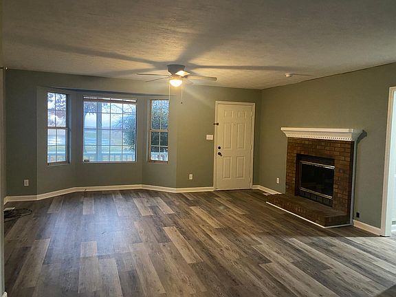 Laminate wood flooring throughout. fireplace. 3 bedroom 2 bath split bedroom design. Large yard. Carport $1550 per month $1550 deposit. Pets accepted with restrictions. Utilities and lawn maintenance is tenant responsibility. No smoking indoors.