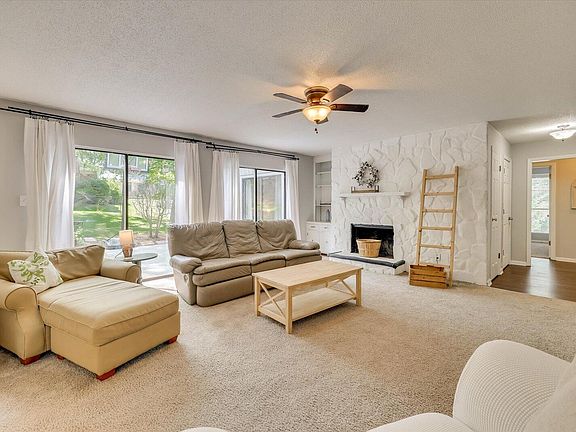 Step inside and discover a unique floor plan designed for entertaining. The great room features a stone fireplace, handsome built-ins, and a wall of glass doors that bathe the interiors in natural morning light. The kitchen offers ample cabinet and counter space, an extra prep sink, bar seating, and an oversized pantry for added storage.