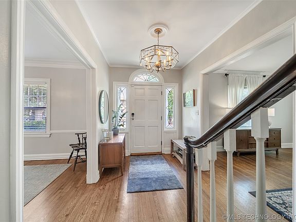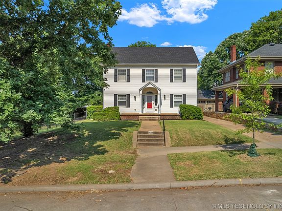 Beautiful Historic Tracy Park home sitting on 2 lots features updated kitchen, remodeled baths, refinished hardwoods, & new custom fireplace in living room. Oversized master, office space downstairs, quarters could be 4th bedroom or office (space to add a bathroom), new large first floor laundry room and nice sized pantry. Home has been completely rewired and new service added to garage and quarters. Brand new roof on house and detached garage May 2023. Stunning views of downtown Tulsa, trails all around, neighborhood park and tennis courts. This hidden gem provides easy access to highways, shopping, and restaurants. Don't miss this one!