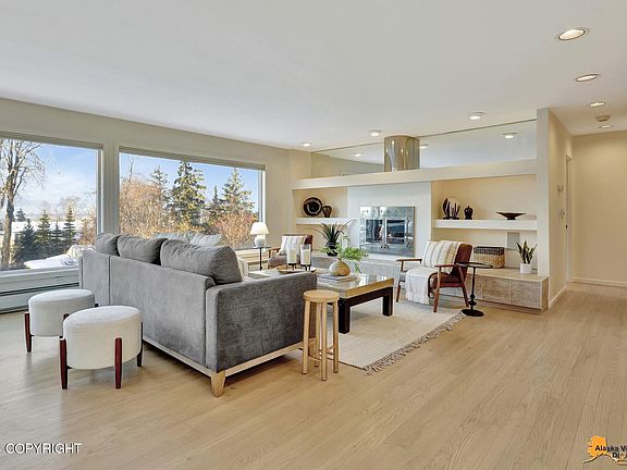This architecturally exciting contemporary home is perfect for an owner desiring an urban lifestyle w/sophistication. Surrounded by mature trees that offer privacy w/peek-a-boo inlet & mountain views the home is flooded w/sunshine through large windows & skylights. The spacious great room features a dramatic fireplace & the kitchen & baths reflect the modern dynamic of the home. Oak hardwoodfloors throughout the upper level with wool carpets in the bedrooms. A large two car tandem garage is utilized only by the owner. Low maintenance gardens surround the home. The flag lot is accessed by a private driveway tucked into lush landscaping. Downstairs MIL / rental unit (approx 1113SF) features 2 bedroom with a separate entrance that has been home to the same tenant for over 30 years on a month to month basis. Tenants pay $1850/mnth + internet. Home could be converted back to a single family. It is very rare that a property come for sale on S Street in Bootlegger Cove. This unique property is one of a kind and offers an unusual opportunity to reside in a light-filled, exquisite retreat while enjoying the revenue produced by the first level apartment. Come home to 1218 S Street.