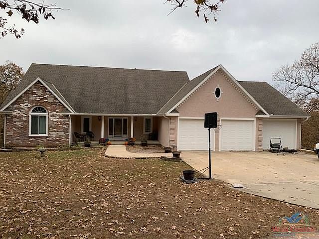 Beautiful country home on 9.9 ac M/L. Home has 5 bed, and 3 1/2 bath. Large kitchen with SS appliance and island. Large living area with fireplace. Master bed and bath on main level. Storm shelter down stairs. Full finished basement with bar and fireplace. Home has 4 car garage, storage, new windows, siding, drywall and gutters. Close to Truman Lake! Close to private boat ramp. A must see. Call for info.