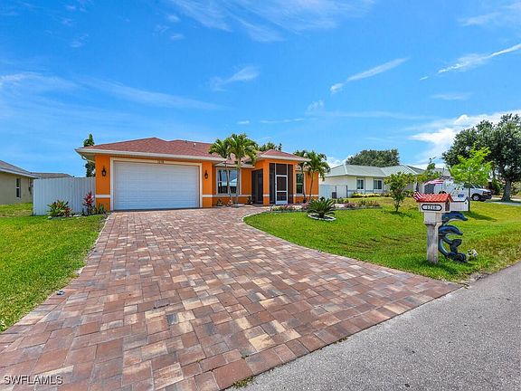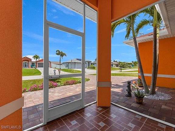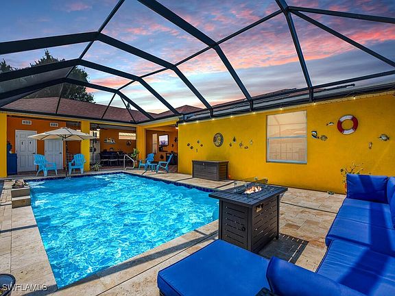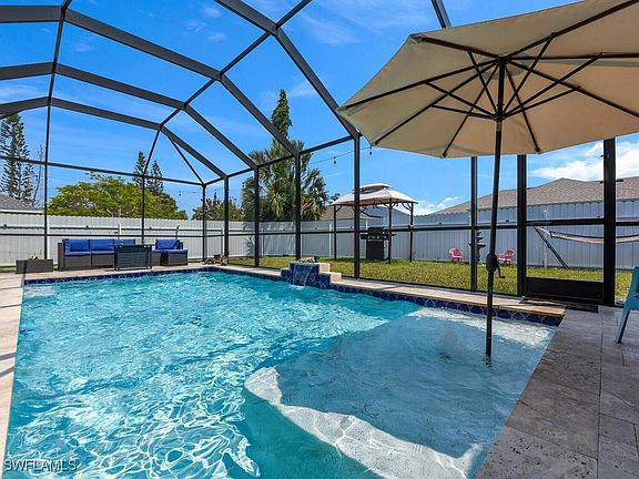 Welcome to your slice of paradise in sunny Southwest Florida! This stunning home epitomizes luxury living and offers an abundance of features designed for both relaxation and entertainment. Nestled in a prime location just minutes from the groundbreaking new development of shops and restaurants known as Cape Coral Town Center, this residence combines the allure of modern amenities with the tranquility of a residential retreat. Step inside and be greeted by an open and spacious floor plan, accentuated by high ceilings and elegant tile flooring throughout. With 4 bedrooms and a den, along with 3 bathrooms including a convenient pool bath, there's plenty of space for the whole family and guests to feel right at home. The heart of this home lies in its outdoor oasis, where you'll find a custom solar-heated saltwater pool complete with a sun shelf and fountain, providing the perfect backdrop for outdoor gatherings and relaxation. Fire up the gas stove in the outdoor kitchen and grill up a feast while enjoying the beautiful Florida weather in your own private paradise. Inside, the home boasts a Jack and Jill bathroom connecting two of the bedrooms and the den, offering convenience and privacy for family members or guests. For added peace of mind and security, the property is fully fenced with durable vinyl fencing, while custom roll-down privacy screens on the lanai ensure your comfort and privacy, doubling as roll-down storm protection. As you arrive home, you'll be greeted by a large custom driveway adorned with elegant pavers, providing ample parking space for your vehicles and guests. The front landscaping features automatic illumination, adding to the curb appeal and enhancing the beauty of the property. Additionally, this home boasts a new roof installed in 2024, providing years of worry-free living. With its unbeatable combination of luxury amenities, prime location, and proximity to exciting new developments, this home offers the ultimate Southwest Florida lifestyle. Don't miss out on the opportunity to make this your own private sanctuary in paradise!