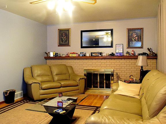 Super sharp ranch backs up to park. Lots of beautiful hardwood. Beige carpet in master bedroom. Newer ceiling fans throughout. Kitchen, including plumbing, remodeled in 2010, new sump pump approx 6 months old, vinyl double panes windows throughout. Beautiful enclosed cement patio. Roof approx 15 years old. Furnace approx 8-10 years old. A/C about one year old. Finished basement plus a 4th bedroom and a full bath down. Two fireplaces (gas log in living room and wood burning in basement..