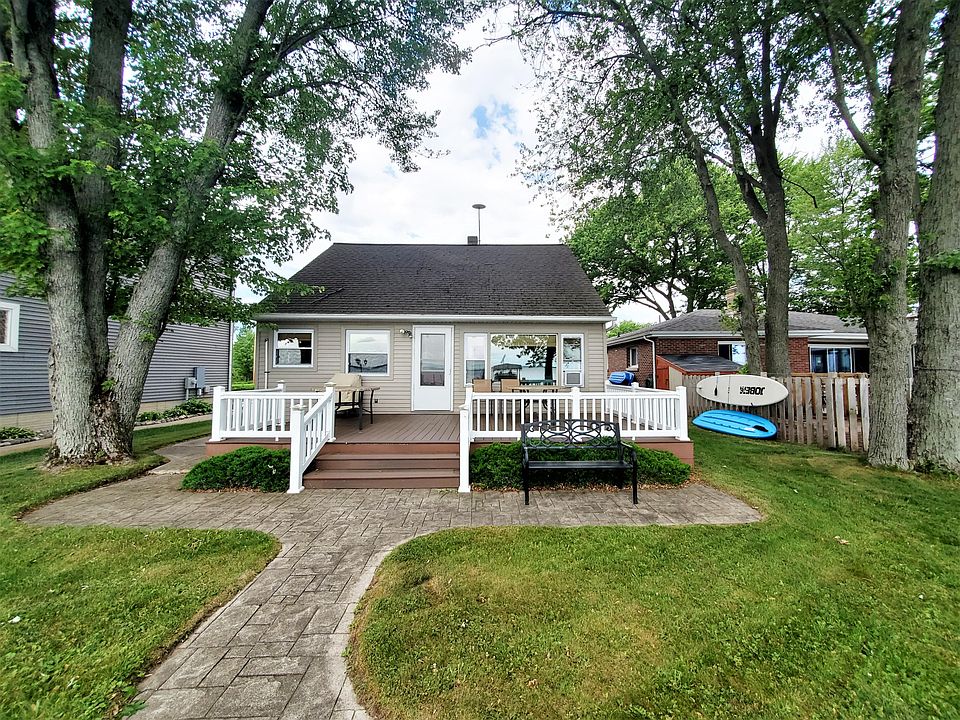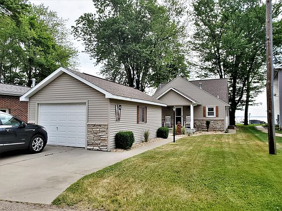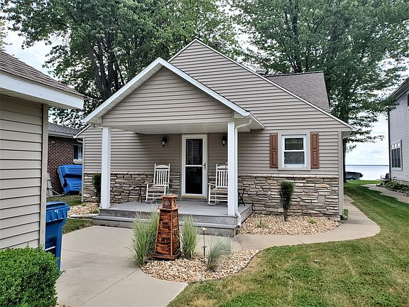 Adorable lakefront cottage with a warm white washed knotty pine interior updated kitchen with maple cabinetry and new windows throughout. Meticulously maintained with 2 main floor bedrooms, 1 with a private bath, laundry room and additional full bath. Living room, kitchen and dining all share amazing views of the water. 2nd story offers 2 additional bedrooms and an another area that is currently used for extra beds/sleeping, but could easily be used for an office or family room. Detached 1.5 car garage offers plenty of storage for those lake toys and a vehicle. Maintenance-free Trex deck overlooking the lake and a second deck in back, ideal for relaxing on those windy days! Dock included in sale.