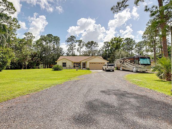 Close to Royal Palm 3 Bedroom, 2 bath, 2 car garage home. Beautiful fully sodded yard on over an acre. Features include two pole barns-one is 30x14 with 16x8 stall behind with water. Second pole barn 20x14 & is great for entertaining. It has concrete floor, electric and water. The kitchen boast new range, dishwasher, & disposal. Front loading washer & dryer are only two years old. Master bedroom & bathroom remodeled and include waterproof vinyl plank floors, crown molding, 5 -1/4'' baseboards, dual sink vanity, oval mirrored medicine cabinets, new tile shower. Additional features include new verticals & sunshades throughout, ceiling fans, high hat lighting, plant shelves & more. There is a termite bond on the home until May 2021. AC is 2014. **FREEZER IN GARAGE DOES NOT CONVEY.