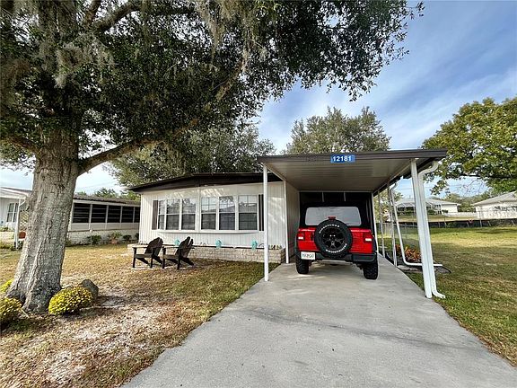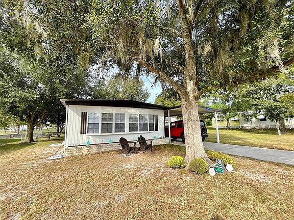 Located on a double lot is this well maintained home owned by Miss Klean. Two big beautiful bay windows in the front keep the home light and bright, along with the kitchen with white cabinets and white appliances. Built in China cabinet in the dining area. Metal roof. Fenced yard for pets. Washer and dryer and storage cabinets are staying for buyers convenience. Off the laundry area is a great screened lanai to enjoy your early mornings and evenings. Both bedrooms have walk in closets. Toilet was just replaced in the guest bath. Master bedroom has its own full bath with walk shower. New vapor barrier. This home is located in a great location close to shopping and medical. The community is great and offers a golf course, clubhouse, pool, restaurant, tennis, shuffleboard and much more. Come check out this perfect retirement home located in a 55 plus community with low monthly fees.