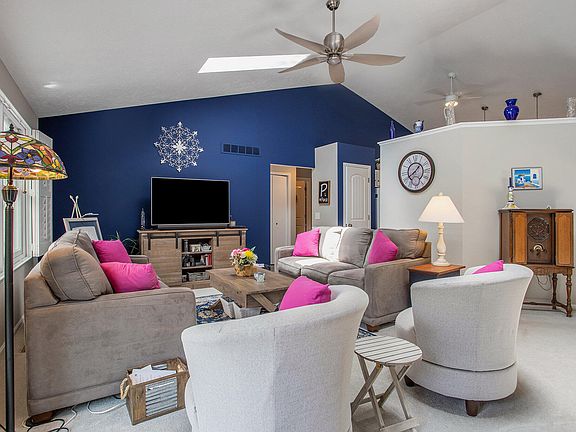 Meticulously cared for Ranch walkout with many updates on 3.5 acres overlooking peaceful ponds! Vaulted living room with fireplace, skylight & slider to newer deck Enjoy the peaceful sound of the waterfall, view through railing allows for views of both the waterfall/swimming pond surrounded by luscious plantings & the Natural Pond with wildlife galore Open kitchen, eating area, snack bar, all appliances & pantry Spacious main flr master with Hardwd floors, master bath, relaxing 3 seasons room just off the master with door to deck 2 other good sized bedrooms & bath Laundry just of off the garage Finished lower walkout with large family rm, bedroom, bath & lots of storage 30 X 40 pole barn with electricity Seller has enjoyed viewing Fireworks from the deck on the 4th of July