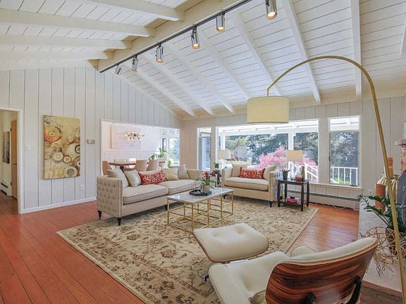 Magic happens at this tranquil Skyline Estates home. Perched on top of the ridge with majestic forest and water views that offer a stunning visual panorama and private setting. Setback from the road allows for a large circular driveway with dual gated entries and a two car garage. Nature fills every window of this home built on one level with a formal living room, dining room and family room. Natural light flickers all over the house and brings an energetic spirit to the big common areas. The grand deck is perfect for entertaining and summer evenings and you can see the San Francisco Bay Waters through the trees as you walk out onto your 1 acre of land. Common rooms and family room/ kitchen all open up to each other. Vaulted Beamed Ceilings in Living Room add a classic touch of warmth and presence. Close to Hwy 580, Oakland Hills Country Club, Chabot Space Center, Montclair Village, a great starting point for any adventure or commute and a great way to end the day in peace and quiet.