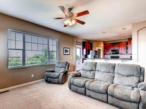 Unobstructed views of the mountains from the newly refinished back deck makes for amazing sunsets! House backs to open space! Professionally landscaped including concrete patio, pre-wired for hot tub! Upgraded kitchen with granite countertops, 42” maple cabinets, tile flooring, and 9 ft. ceilings throughout main level! Upgraded/custom upper level floor plan with extra loft/living area, larger master bedroom, radiant floor heating and custom installed ceiling speakers in master bath, added linen closet, jack and jill bathroom, and pre-wired ceiling fans in bedrooms. Unfinished full basement ready for custom build-out including wet bar rough-in and plumbing rough-in for bathroom! 3-car garage w/ custom cabinets/shop area, and 11’-8’’ partial ceiling height, great for extra storage! Upgraded insulation package for lower utility bills!