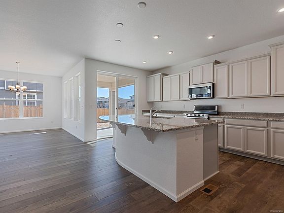 Brand NEW energy-efficient home ready NOW! The Apex features granite kitchen counter tops with large island with 42' upper cabinets, crown molding, wood-look laminate flooring throughout mail level, gas oven, covered outdoor living, full AC dual zone, full 9' basement with bathroom rough-in, 5 piece master bath, study, and more! Enjoy living at Aspen Reserve conveniently located close to Downtown Denver. Known for their energy-efficient features, our home help you live a healthier and quieter lifestyle while saving thousands on utility bills.