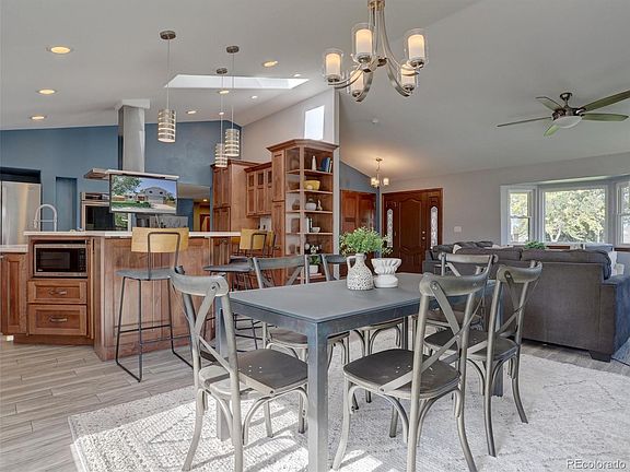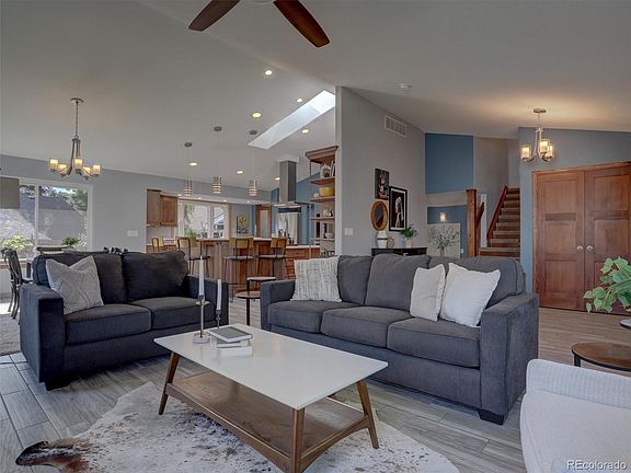 This 4 bed/4 bath 2-story home is tucked away on a quiet and friendly cul-de-sac in an ideal location for family living with easy access to C-470, Highway 285, dining and shopping. After morning walks around Hine Lake, you'll spend countless nights in the spacious backyard watching your kids play on the playground, and dig in the sandbox as you sit on the patio relaxing, grilling, and enjoying the magnificent Colorado weather. The hot tub will be the perfect private escape to relax on cold nights. What's more, you have spacious raised garden beds with a drip system. The custom built shed has its own separate gardening section away from the lawn tools. Once inside you are greeted by vaulted ceilings with abundant natural light. The completely remodeled and updated kitchen is a chef's dream with upgraded lighting, Corian countertops, soft-closed drawers, soft-closed cabinets, a six-burner stove, hood vent with accent lighting, double oven, warming drawer, in and under cabinet lighting, and a bar with it's own TV, and stools. The open floor plan is ideal for being together as a family to watch a movie and cook memorable meals. The cozy family room is prefect for those cold Colorado nights as you sit by the fire and watch your favorite shows. The updated laundry room is equipped with a washer, a dryer, a sink and storage shelves. Upstairs you are greeted by a primary suite with a completely remodeled 5-piece bathroom with double sinks, a jet action tub, and an oversized tile shower. The other 3 bedrooms are equipped with ceiling fans, 2 with their own TV's, and fully remodeled bathroom with an oversized tub, and double sinks. The basement welcomes you with a steam shower and plenty of room for a second family room, office space, or kids play area. You and your family are going to feel the love in this very social cul-de-sac which has impromtu gatherings, summer shrimp boil, huge Christmas light participation by the houses, and a Holiday Progressive Dinner!