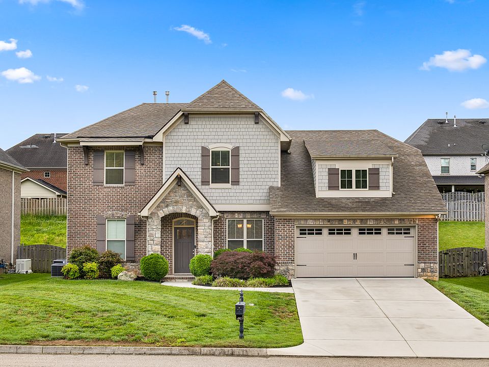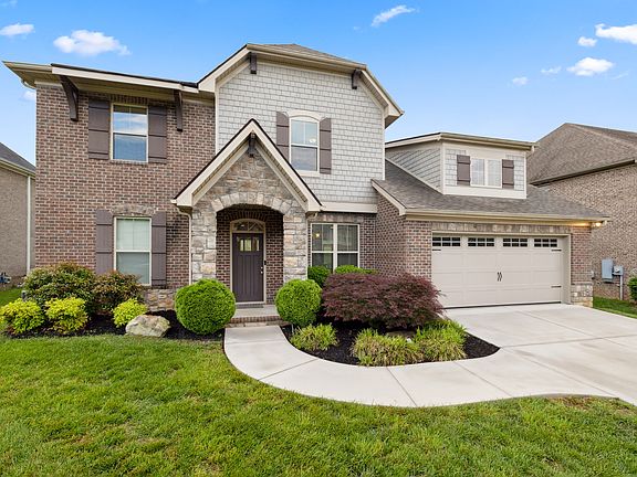 Located in one of Farragut's most desirable communities, this stunning custom-built Saddlebrook home offers timeless elegance and modern comfort. The brick and stone exterior welcomes you into an open-concept layout highlighted by a soaring two-story great room, abundant natural light, and a cozy gas fireplace which opens to the updated kitchen. Kitchen features granite countertops, stainless steel appliances, tiled backsplash, and a sunny eat-in area. Beautiful hardwood floors flow through the entry, living, and dining areas, while tile accents all wet spaces. The main-level primary suite is a true retreat with a spa-like bathroom and a spacious walk-in closet. Upstairs, you'll find three generously sized bedrooms and a large bonus room, ideal for a playroom, home office, or media space. Additional highlights include a tankless water heater, partially fenced yard, & large patio area. Sheffield offers a community pool and clubhouse, and close proximity to greenways, parks, walking trails, and Farragut schools. 1 Year Lease Minimum Yard Mowing Not Included