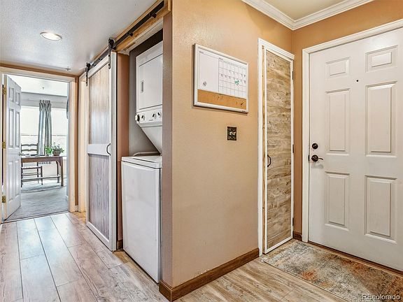 Cute and cozy two-bedroom, two bath spacious 1,101 sq. ft. condo at Cambridge in the Foothills! Lovely remodeled kitchen with granite countertops and new vinyl flooring updates the look and feel. New barn door reveals full-size stacking washer and dryer included! New fireplace tile and faux stone surround! Primary suite includes walk-in closet, wall closet, and remodeled bathroom with an oversized shower and new vanity. Step out onto your oversized balcony from either your living room or the secondary bedroom/office to take in views of the foothills! The community is located in Littleton near the foothills with plenty of walkability and things to do nearby. Community amenities include clubhouse, outdoor pool, spa/hot tub, fitness center, and ample guest parking. Comparable units sell for over $100,000 above list price.