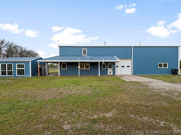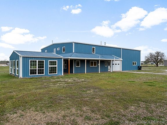 Cool and unique property that is an aviator's dream! Located on Airman Acres Field in Collinsville. This home was built in 2010 with the intent to maintain and fly your aircraft right from your front yard. Full span hydraulic hangar door along with two drive through doors for your vehicles. Home comes with two full bedrooms with two full baths and two half baths. The second bedroom can be considered a separate "Mother-In-Law" studio space with a kitchenet. Upstairs also contains a separate "fabric room" with winch access to hoist up heavy objects to work on your airplane assemblies or whatever else interests you. The hangar and "fabric" room are plumbed for compressed air, both have full storage cabinets and work benches, and are heated and well-lit. The main floor living space has heated concrete floors and concrete countertops. The home has more storage space then you will ever need. Out the back door, there is a separate self-contained hot tub room. The home has a great wrap around porch to sit out and enjoy the beautiful evenings. The home sits on 2.5 acres located at the end of the runway.