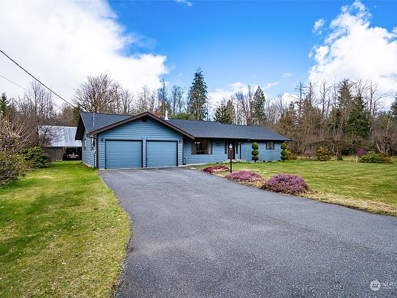 Beautiful Mountain views and the quietest of settings, perfect for enjoying nature and living the good life! This spacious 1400 sq/ft Rockport rambler offers two bedrooms and one full bath. Primary bedroom has large walk in closet. Cozy wood stove warms the living room while you enjoy the view. Kitchen offers real wood cabinets, eating peninsula and desk area. Utility room with ample cabinets and wash sink. Oversized two car garage with additional 1/2 bath. All on 1.53 level acres with multi purpose outbuildings and your own orchard! Two Parcels (P30774 & P120210) Be sure to check this one out before it's gone!