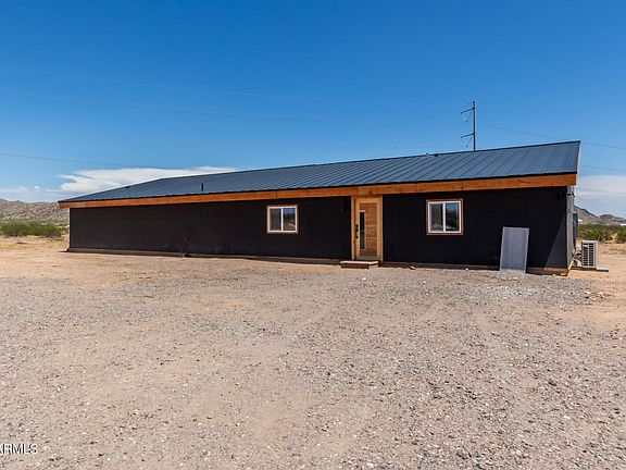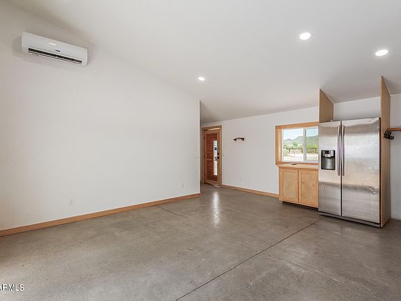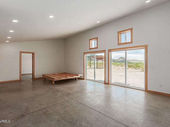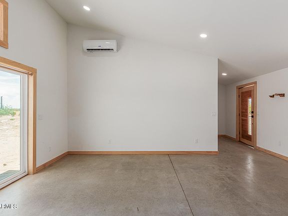 2024-built, brand new modern-style home on nearly 5 acres of horse property with a private well and breathtaking mountain views! Discover an open layout with vaulted ceilings, neutral palette, and lots of natural light. Concrete flooring and solid wood doors throughout. There are 3 sets of sliding glass doors that open directly to the outdoors, including one in the master bedroom, where you'll also find a private bathroom with tiled shower and soaking tub. Every room has it's own mini split for the ultimate in climate control and energy efficiency. Outside, the covered patio provides a shaded space to enjoy the serene views. There are 12 solar panels that you can connect and perhaps live completely off grid. Or subdivide and develop the land further to maximize your investment.