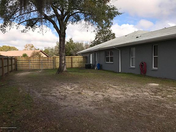 This tastefully updated 3-bedroom, salt water pool home is minutes from the Suncoast Pkwy on an a 1/2 acre, fenced lot. In addition to the oversized att. 2 Car garage there is a 506-sf det. 2 car garage and a 640-sf RV / Boat Port. Updates / amenities include 100% waterproof wood faux planking with 51/4 inch base molding, interior / exterior painting, colonial panel doors, well / irrigation system, pocketing sliding glass doors, dual beveled / leaded glass entry, camera system, updated bathrooms, picture mirrors in both bathrooms, natural stone on the master bathroom floor and shower floor, custom closet in the master bedroom, pantry, hallway coat closet, designer lighting fixtures, roof / 2009, HVAC / 2008, water heater / 2017, det. garage roof / 2018. Schedule your showing today!