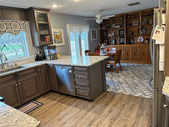 Your country dream home is now on the market and waiting for you! You will fall in love with this well maintained beautifully updated 3 bedroom, 2 full bath ranch home which sits on 2.2 acres. Inside you will love the updated custom kitchen with Cambria quartz countertops along with the gorgeous cabinetry, stainless appliances which will remain and wood laminate in the kitchen. You will enjoy many hours in the cozy living room or outside in the She Shed, relaxing on the patio with a fire or taking long walks down the quiet country road. Rural Water District 5 supplies the house plus there is an additional small well which can be used for outside watering. North of home there are eight fruit trees to enjoy which include apple, apricot, peach and cherry and mulched raised garden beds surround the house for your spring flowers! There is a one car attached garage, a larger unattached garage plus a small storage shed! No showings until March 4th due to owners having a moving sale. Please call for an appointment to come see your new country home!