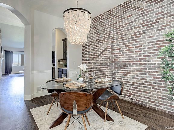 Welcome to your new home with breathtaking mountain views! This spacious 5-bedroom, 5-bathroom residence offers a dedicated office, a gourmet kitchen, and a luxurious primary suite with a spa-like bathroom. Enjoy sweeping vistas from multiple rooms, along with beautiful hardwood floors throughout the main level. The kitchen features a gas cooktop, stainless steel appliances, a large island, and a butler's pantry. A small office or coffee bar with an additional refrigerator is located just off the kitchen. The elegant dining room boasts a custom brick wall, while the great room offers stunning views, a cozy fireplace, and large picture windows. Step onto the covered back patio and take in the mesmerizing scenery. A spiral staircase leads to an expansive back patio with a built-in fire pit. The fully finished basement includes three additional bedrooms, one with an attached Jack and Jill bathroom and separate sinks. There’s also a spacious recreation area, a bonus room for movies or workouts (or non conforming bedroom), and an extra laundry room. Hop over the back fence and be at the playground and pool! Driveway has a built in basketball hoop and the home is situated on a semi cul de sac. Just minutes to shopping, Starbucks, and trails. This home truly has everything you need!