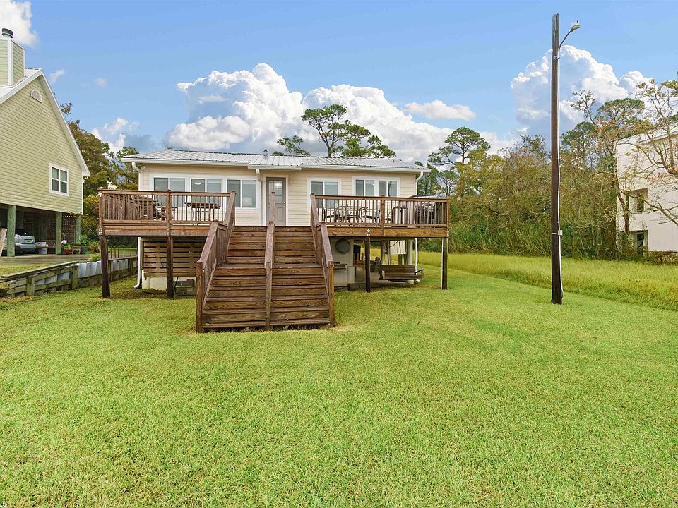 UNBELIEVABLE PRICE for adorable BAY FRONT bungalow! Two bedrooms one bath with beautiful views of Mobile Bay. Great out door pier for crabbing and two spacious decks for entertaining and watching the amazing sunsets.