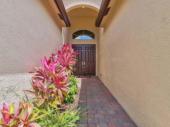 Rarely available ''Daniela'' model with $140K in Upgrades! Oversized Builder's Premium Private lot with Northern exposure! Granite kitchen features custom cabinetry, glass tile backsplash, & New Bosch appliances! There is a casual breakfast nook and formal dining room. Diagonally laid Tile flooring, Custom paint, Crown molding, Coffered ceilings, Designer light fixtures, window treatments & magnificent Built-ins! The master suite features Custom built out walk-in closets and luxurious Granite Master Bath with Soaking Tub & Frameless shower. In addition to the private screened and pavered patio the Daniela features a 2CG with epoxy flooring & additional storage, 4 full Bedrooms plus Den/ Office & 4 Bathrooms. New Rheem A/C system & Impact windows. Maintenance is $2014.00 paid per quarter. and includes lawn, alarm monitoring, manned gate, cable package, internet, and amenities.