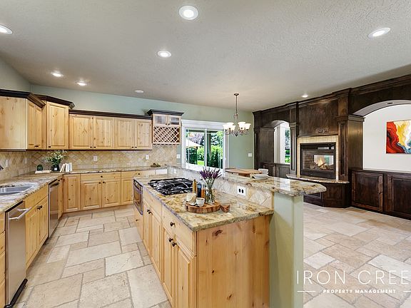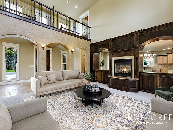 You'll be greeted by an expansive entry way and living room with vaulted ceilings and large windows with a two-sided fireplace as the focal point. On the other side of the fireplace you'll find the large kitchen and informal dining area. A formal dining area is also located off the kitchen.
