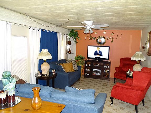 This is a three-bedroom two-bath home. The kitchen measures 16 x 12 with lots of cupboards and cabinets and nice tile countertops. The appliances are updated and you have a dishwasher too. This home has a separate dining area that holds a dinette set for 6 with a hutch. Behind the dining area is a closet for inside washer and dryer that will be furnished. The living room measures 12 x 20 and is very well lit with large windows,and laminate flooring. The master bedroom in this home measures an extremely large 20 x 14 that has a walk-in closet and it's ensuite. Both of the other bedrooms are of very good size one being a 12 x 12 and the other a 12 x 10. Both of these bedrooms have walk-in closets as well as ceiling fans. This home also host a very lovely Florida room with screen and vinyl windows and tile flooring for easy maintenance. Outside you have a shed and carport that will accommodate two cars. So hurry put this one on the list