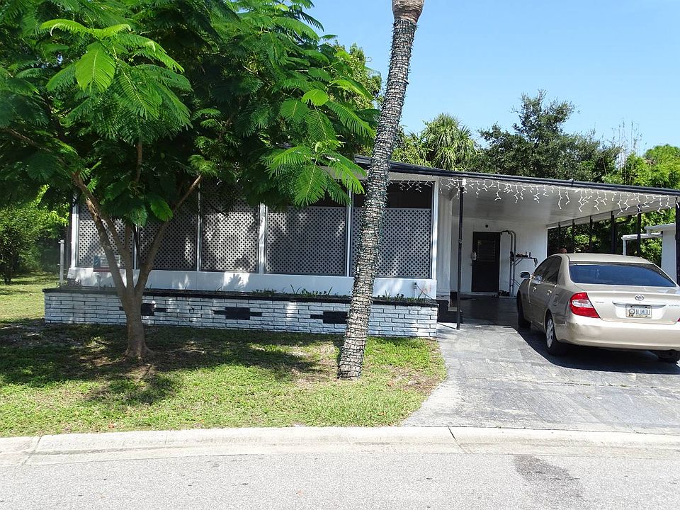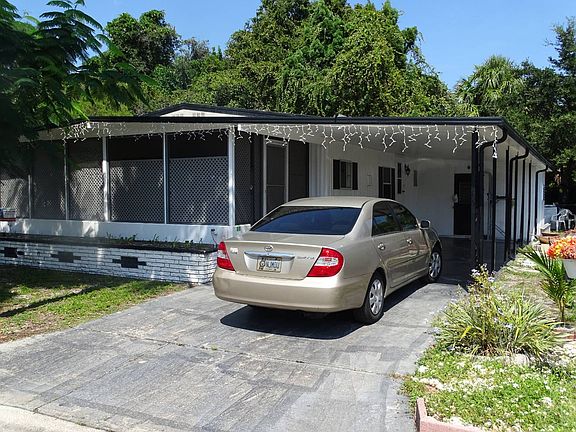 This is a two bedroom two bath mobile home.That sits on one of the corner lots giving lots of privacy. The first thing you know is the massive amount of shade trees, a screen in Florida room. And a large carport that will accommodate two cars. The home also offers a oversized shed,the half for a storage shed, the other half that houses your washer and dryer. This house has had a new water heater installed, over half of the home has had the flooring replaced. New windows installed. The roof was professionally checked and is in good condition. All the walls where removed and replaced with sheetrock. A lot has gone into this home there are still little things that need to be done. And the air handler needs to be replaced. Come check out this home it really has a lot to offer, it's it's in a park that you have to be 48 + no children as this is an adult park, there is a swimming pool and Clubhouse for your enjoyment all of this with a low lot rent of 556. And you can bring your four-legged family members with you dogs are welcome.