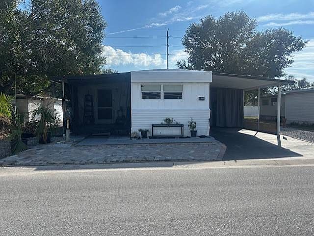One of a kind 3 Bedroom and Full Efficiency with Bathroom, Huge Shower, Fridge, Mini Stove and 2 private entrances. This home has been remodeled and is move in ready. 3 great outdoor area's to enjoy Florida's climate, a storage Shed and another storage area on side of home. This home is custom and very well planned out for maximum use of space inside and outside. Carport and plenty of extra parking. Centrally located close to stores and Restaurants. Land Lease is only $870 mo. Includes Water, Trash, Sewer and Amenities Pet Friendly