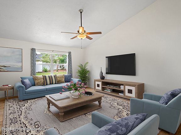 Ceiling fans and lighting fixtures add a stylish touch to every room. Enjoy year-round comfort with an AC unit installed in 2018. The fully fenced backyard (white vinyl fence installed in 2021) is perfect for relaxing or entertaining, featuring a cozy fire pit, swing set, and even a charming chicken coop Located just minutes from the Suncoast Parkway and the Anderson Snow Sports Complex, this home offers convenient access to shopping centers, restaurants, and is only 40 minutes from Tampa International Airport. Don't miss your chance to own this move-in-ready gem with space, style, location , and perfect price all in one!