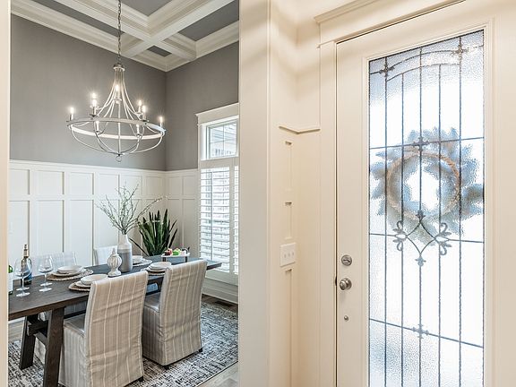 Soaring 13' ceilings in the entry, living, and formal dining rooms create a grand, open feel. Rich 3/4" oak hardwood floors and dark wood cabinetry add timeless elegance, complemented by top-down/bottom-up blinds and plantation shutters in key rooms. CAT 5 ethernet wiring throughout supports today's connected lifestyle.