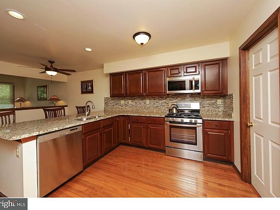 Fabulous end-unit townhome in a great location in Gwynedale community. A full amazingly finished basement with outside entrance offers many opportunities for enjoyment. Entire first floor features hardwood flooring. Impressive two-story foyer with crown molding. Kitchen upgrades include extended Granite counter tops allowing room for stools, tile back splash (installed 2015), LG stainless steel appliances including (French-door) refrigerator, (5-burner) gas range, microwave oven, & dishwasher (2016), and recessed lighting. Custom cherry kitchen cabinets are in amazing condition. First floor laundry between the kitchen & garage is an added feature. Kitchen opens to a large, inviting family room with vaulted ceiling, wood-burning fireplace, two skylights, ceiling fan and an updated sliding glass door (2012) leading to a rear deck that overlooks a wooded area w/ stream. New windows (2014) and custom blinds throughout. Living room w/ crown molding and double door entry. Dining room w/ crown molding and chair rail. A stunning powder room on the first floor. Second floor has three nice size bedrooms all having plenty of windows allowing an abundance of natural light. Both upstairs bathrooms have been modernized. Master bath has beautiful stall shower with frameless glass shower door (installed 2013), soaking tub, and double sinks. Master bedroom has vaulted ceiling and two closets ? one walk-in. Two linen closets upstairs. All interior & exterior lighting fixtures upgraded. Additional upgrades include: Roof and Skylights 2010** Heater and Central Air Conditioning 2012** Second Floor Carpeting 2012** Leaf Filter Gutter Protection 2014** Hardwood Flooring (living room, family room, dining room and laundry room) 2012** Repaved Driveway 2016**New Toilets 2011** Bedroom ceiling fans 2015. This property is conveniently located to I-476, PA Turnpike, SEPTA train stations, shopping/dining options, schools, walking trails, and parks. Nothing to do here but move your furniture