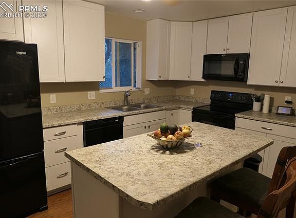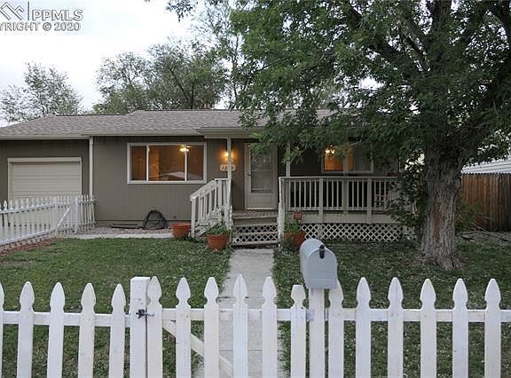 This 4 bedroom ranch-style home with attached garage has been extensively renovated in recent years. Brand new roof shingles and newer vinyl windows are among the updates. There is a wood flooring on most of the main level, big closets & Colonist 6-panel doors throughout. The kitchen is equipped with a generous supply of newer cabinets, a dining area and an island with breakfast bar. Enjoy central A/C and big shade trees for summer comfort! All major appliances are included. The big fenced back yard features a patio and space to set up outdoor games or a kids' playset. In front, a spacious covered deck overlooks the charming picket-fenced front yard. Fountain Creek Regional Trail is nearby for hiking, bicycling & dog walking and connects to Fountain Creek Nature Center & El Pomar Youth Sports Complex. A great location for convenience to Fort Carson, Pikes Peak Community College, restaurants, entertainment and shopping also has quick, easy access to I-25 for commuting both north and south.