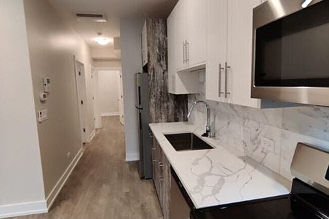 This is a rare opportunity to rent a beautiful new construction 2-bedroom,1-bath luxury unit located in the historic Woodlawn community. This unit was previously occupied by a long-term tenant of 4 years. The advanced construction and high-performance materials make it one of the most durable, comfortable, and efficient buildings in Chicago. The unit features upgraded Bosch appliances, custom cabinetry, and a solar photo voltaic system on the roof to reduce the building's carbon footprint. Zoned Mitsubishi heating and cooling provide extreme comfort and efficiency. Garage parking is available for an additional $100/month or street parking is an option. Owner pays for water, heating, and cooling. An application is not required to schedule a tour, however pre-screening questions must show you meet the minimum requirements.