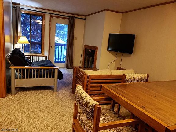 2nd-floor 2-bedroom 2-bath fully furnished condo with balcony, fireplace & close to the outdoor pool. Seller had new hot water heater installed Aug 2020. HOA $256/mo include outside maintenance, road maintenance, tennis, hottub, outdoor pool and trash removal. (Skiing & golf for a fee) Sq ft per tax card - buyer to verify sq ft & taxes.. J-473