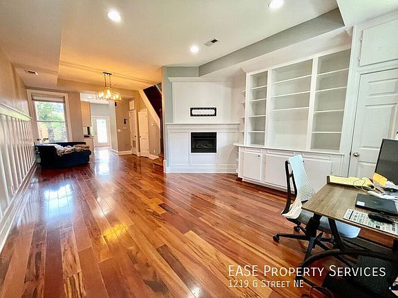 Welcome to 1219 G Street! This beautifully renovated three bedroom home sits just one block south of the bustling H Street Corridor and features off street parking for two cars. The great primary suite plus huge back yard/patio round off this great home. Home Features: Beautiful hardwood flooring throughout Open concept living/dining area with built-in storage and decorative fireplace Gourmet kitchen with granite countertops and high-end stainless steel appliances Upper level leads spacious primary bedroom with ensuite bathroom and walk-in shower Second and third bedrooms towards back of house, one with tons of built-in shelving Additional full bathroom in hallway Massive fenced-in backyard, perfect for entertaining guests Washer/Dryer in unit Parking: Pad behind house for two small cars or one large car. Utilities: Tenants responsible for gas, water and electric. Lease Terms: Available December 1st. Minimum 12 month lease. Application fee is $35 and includes a credit check. Pets considered on a case-by-case basis pending approval by Owner. Security deposit equal to one month's rent due upon lease signing. Location: Sitting just a block off of H Street, there may not be a more convenient location in the city. Steps from Little Miss Whiskey's, Ben's Chili Bowl, The Queen Vic, Copycat Co, Chick Fila A, and much more. One block from the free DC Streetcar with access to Union Station. Also convenient to many Capitol Hill locations.